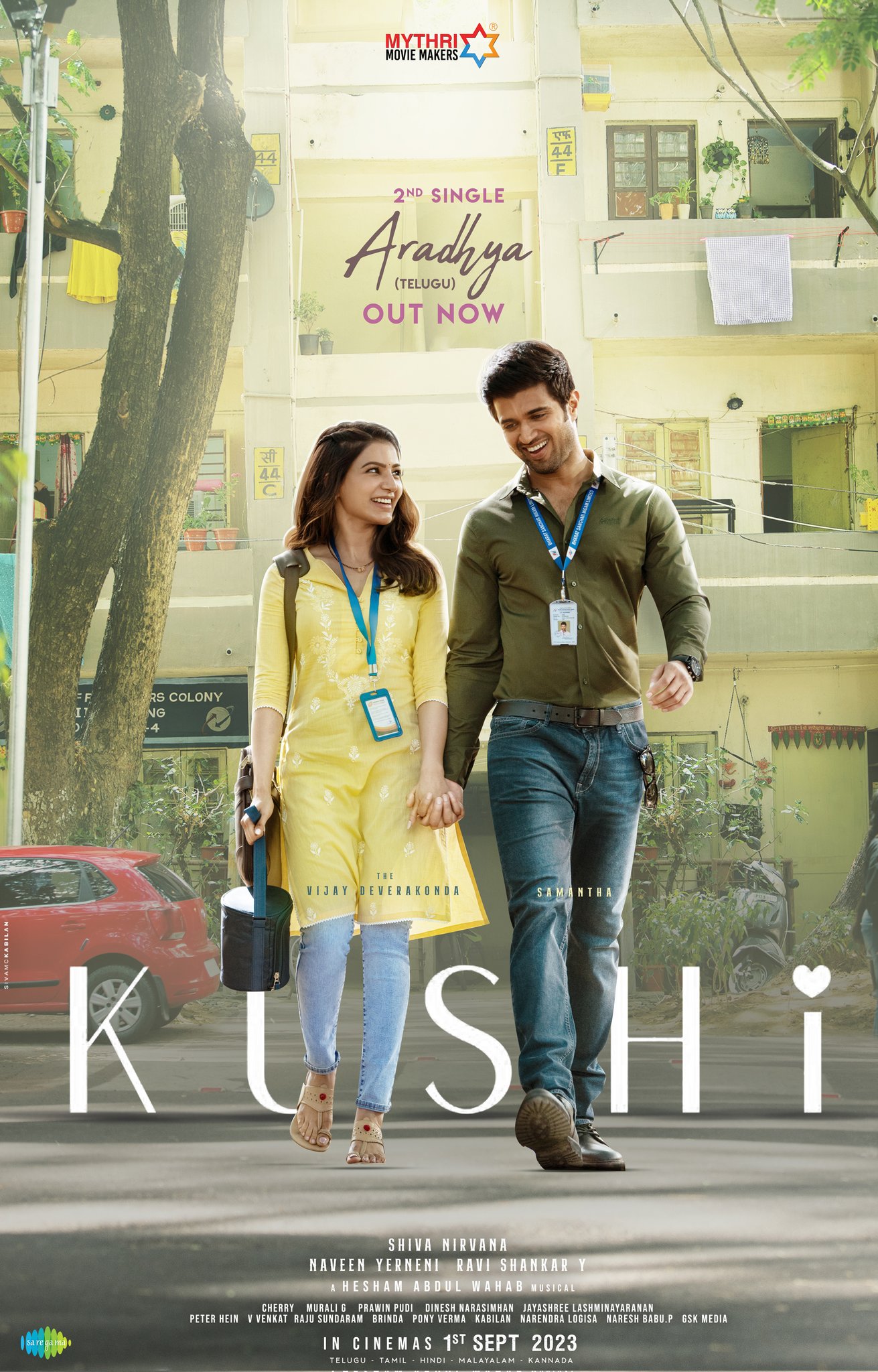 Aradhya is crooned by Sid Sriram and Chinmayi. The song starts with English lyrics, ‘You’re my moonlight, You’re stars in the sky come with me now. You’ve my desire’. Kushi songs are projecting the unconditional love between the lead. Hridayam fame Hesham Abdul Wahab composed this song. The Hindi version is sung by Jubin Nautiyal and Palak Muchchal. The Kannada version is sung by Haricharan Seshadri and Chinmayi. KS Harishankar and Shweta Mohan sang the Malayalam version.